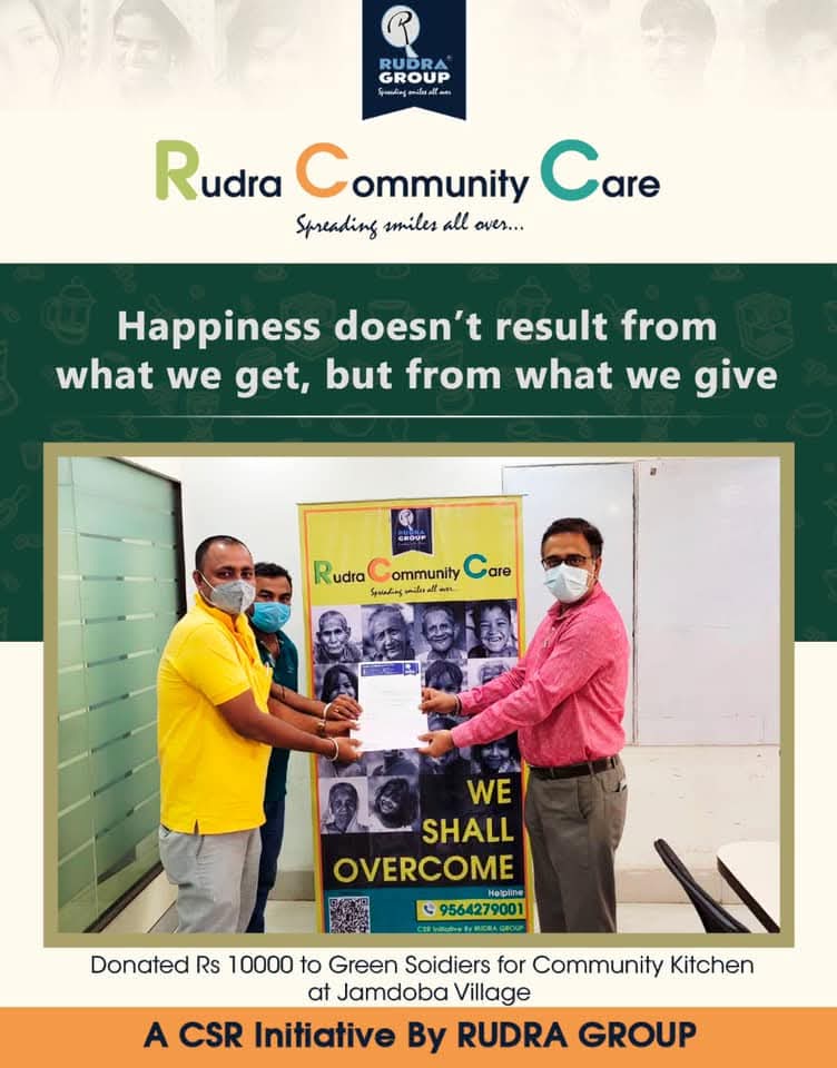 Rudra Group donated ₹10,000 to the Green Soldiers for operating a community kitchen in Jamdoba village. This act...